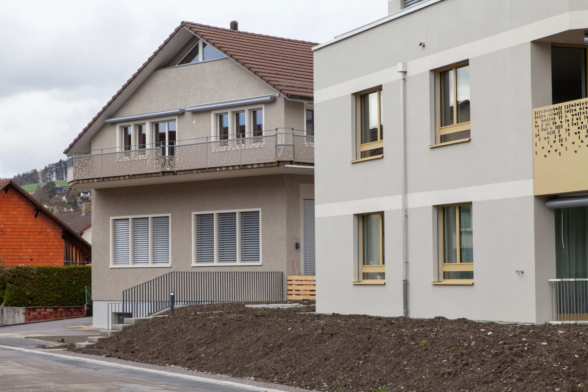 Die zwei Mehrfamilienhäuser verfügen über je vier 3.5-Zimmerwohnungen und jeweils einer Attikawohnung.