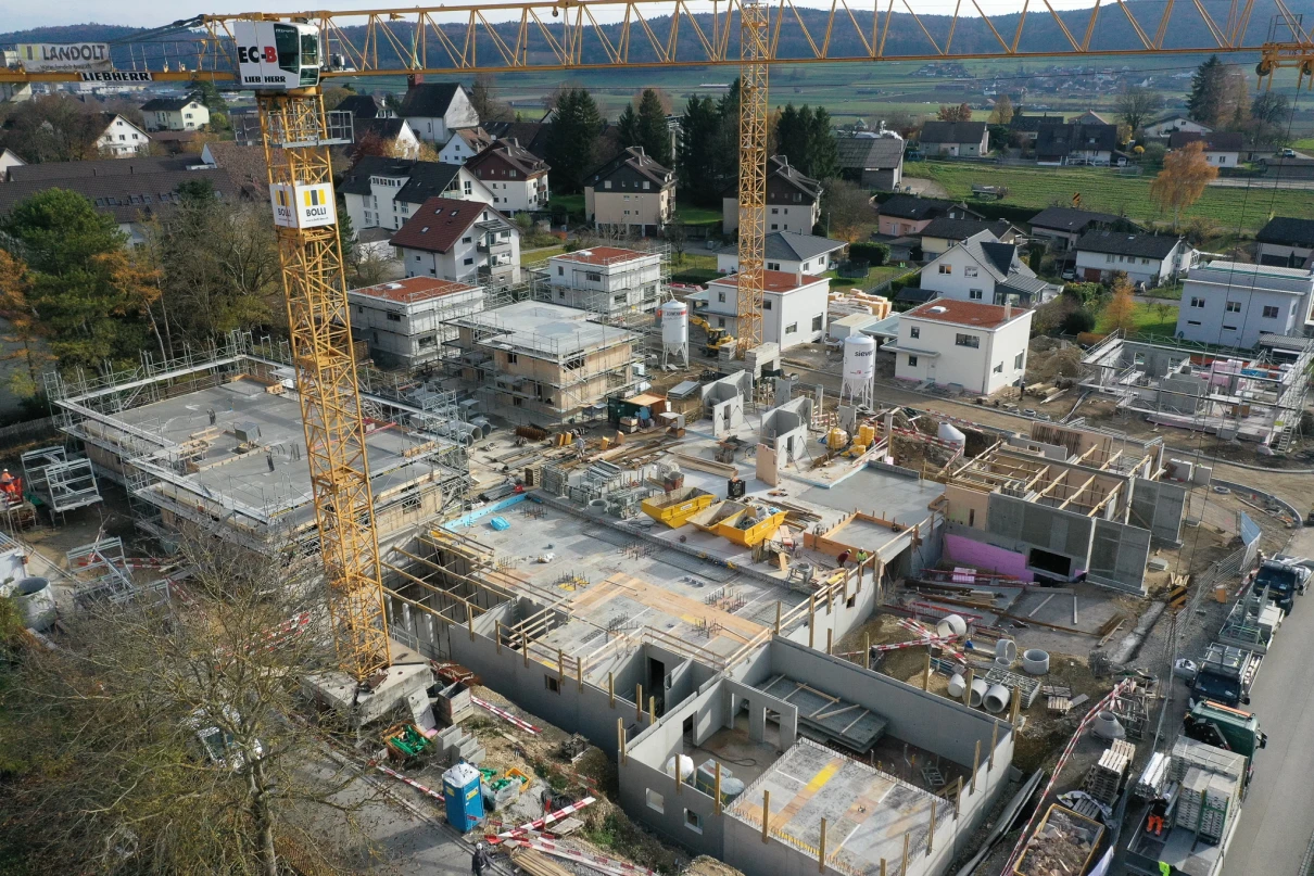 Auf dieser Überbauung in Löhningen entstehen insgesamt 2 Mehrfamilienhäuser mit 18 Mietwohnungen, 6 Doppeleinfamilienhäuser zum Mieten, 5 Einfamilienhäuser zum Kaufen und eine grosse Tiefgarage, welche mit den Mehrfamilien- und Doppeleinfamilienhäusern erschlossen ist.