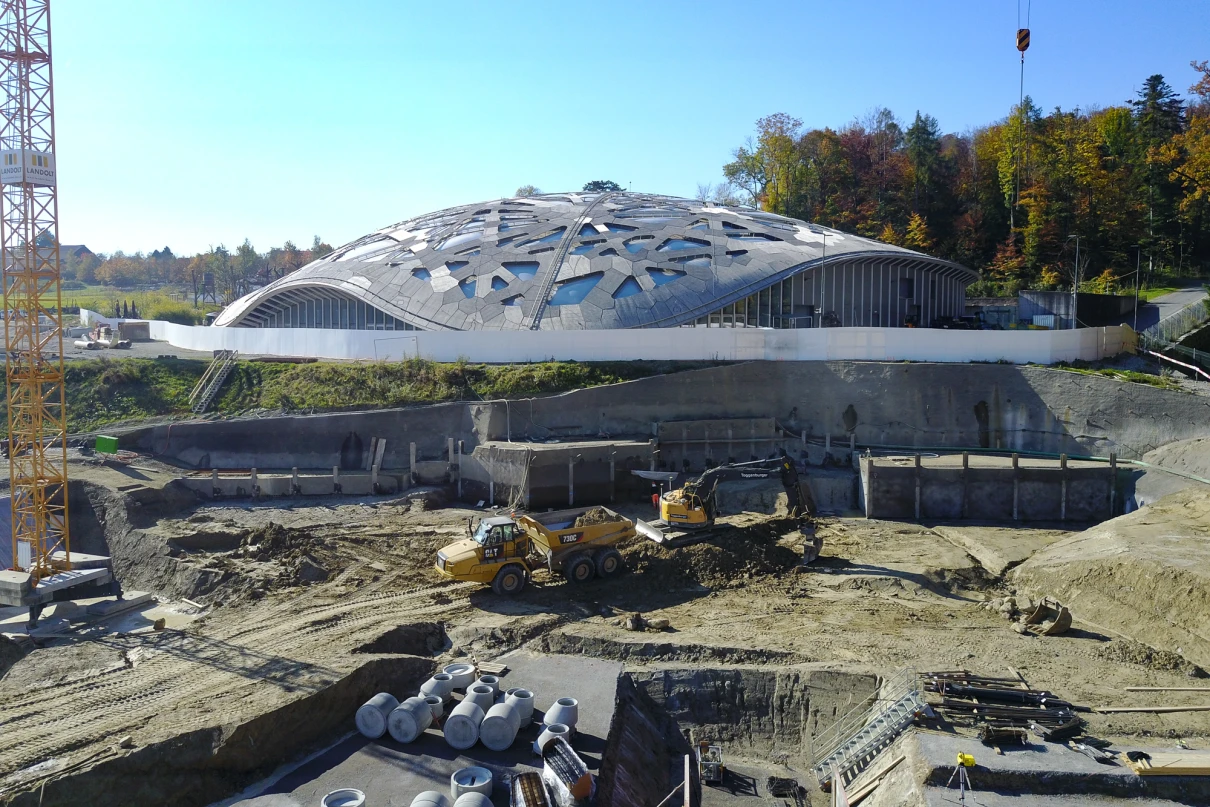 Der Rohbau dieses besonderen Ortes besteht aus einer soliden Stahlbetonkonstruktion. Hohe Wandscheiben wurden betoniert, einige von ihnen mit einer markanten Neigung, um im Endzustand die Form von Kunstfelsen anzunehmen – eine natürliche Umgebung für unsere tierischen Freunde.