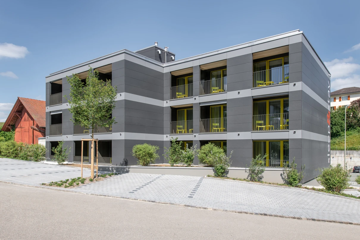 In einer schönen Gegend steht ein neues Hotel mit 22 gemütlichen Zimmern. Das Treppenhaus und der Lift sind aus Sichtbeton Typ 4 gefertigt, was dem Gebäude einen rustikalen Charme verleiht. Jedes Zimmer ist liebevoll gestaltet und bietet höchsten Komfort für einen unvergesslichen Aufenthalt.