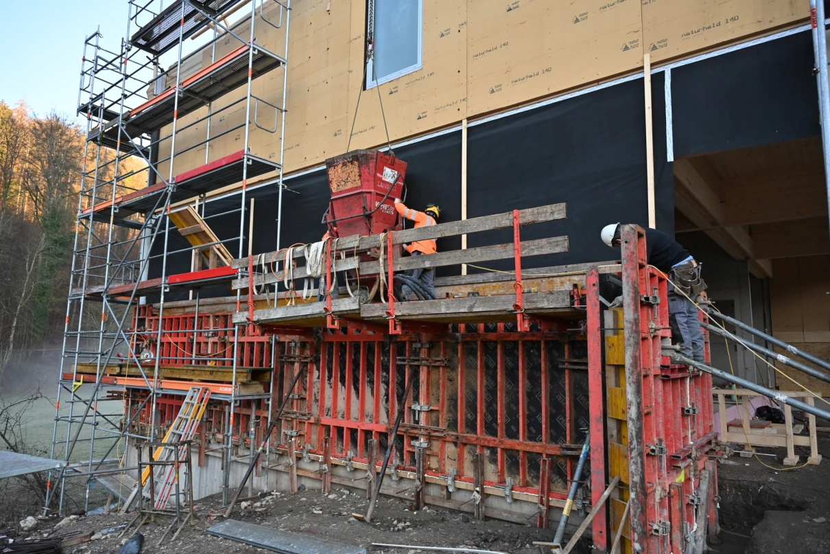Die Betonbauarbeiten gelten als Grundlage für einen darauf aufbauenden Holzbau.